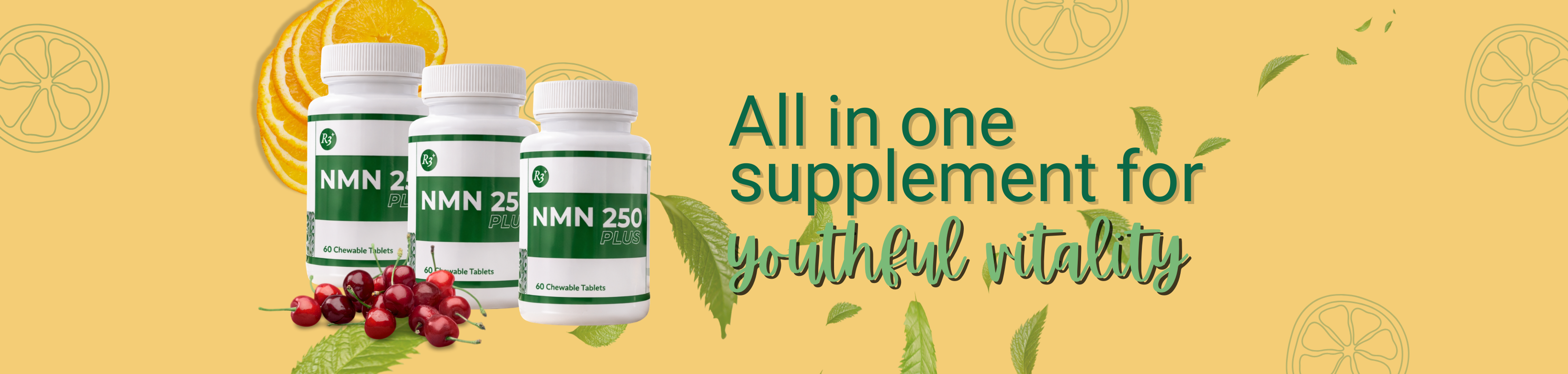 The first ingredients is NMN. It is a protein which forms NAD in the body. NAD+ is the fuel for our cells. When we grow older, this protein becomes less, and we feel older and more tired. The energy and state of being young again can be restored by bringing levels of NAD+ back to normal again. NMN replenishes NAD and energises the powerhouse of the cell, the mitochondris.